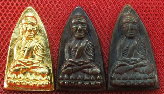 หลวงปู่ทวด พิมพ์เตารีดใหญ่ 3 องค์ เนื้อเปียกทอง เนื้อนวะ เนื้อผิวไฟ วัดในหาน ปี 36