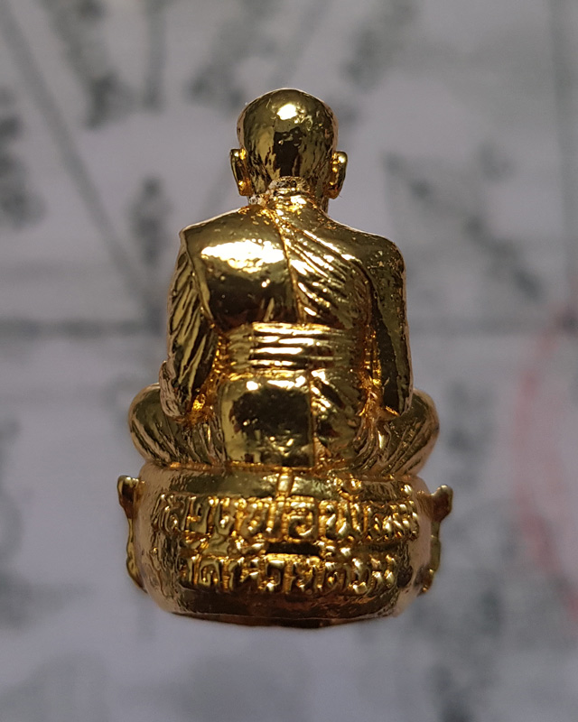 รูปหล่อนั่งกาล หลวงพ่อพัฒน์ วัดห้วยด้วน จ.นครสวรรค์ รุ่นรวยตลอดกาล ชุบทองลงยา 2 สี ปี 2563
