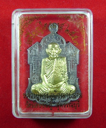 เหรียญจิ๊กโก๋ หลวงปู่นาม ไตรมาส 53 เนื้อตะกั่วหน้าทองฝาบาตร หมายเลข 488 พร้อมกล่องเดิม