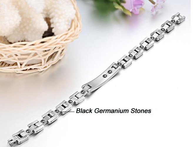 | รายละเอียด | เลสTitanium Stainless Steel Men Germanium Stones Energy Bracelets Power Balance เพื่อสุขภาพ ช่วยการไหลเวียนโลหิต ขนาด กว้าง 12 ม.ม. ยาว 21.50 ซ.ม. |