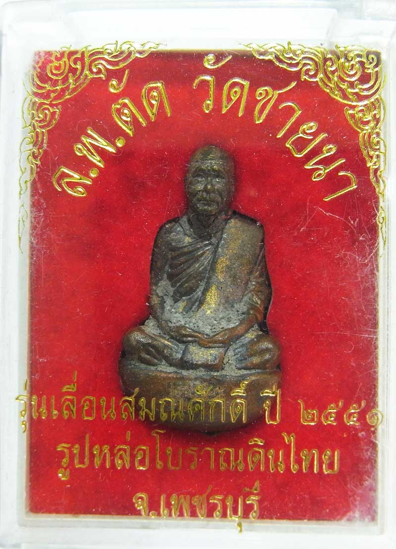 รูปหล่อเบ้าทุบเทดินไทย เลื่อนสมณศักดิ์ หลวงพ่อตัด วัดชายนา เนื้อสัตตะโลหะ พร้อมกล่องเดิม