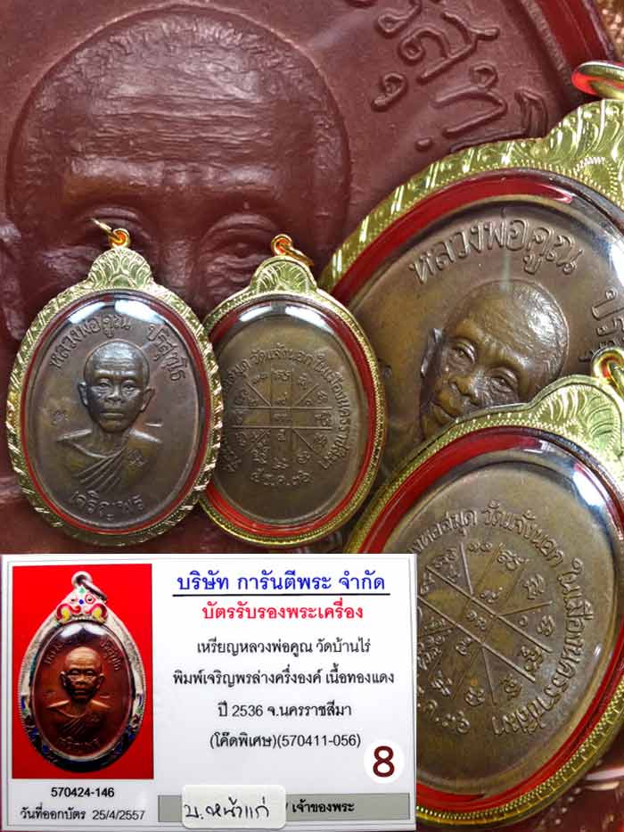 (8) ลพ.คูณ พิมพ์เจริญพรล่างครึ่งองค์ เนื้อทองแดง ปี36 (โค๊ดพิเศษ) บล๊อคทองคำหน้าแก่ เลี่ยมทอง+บัตร