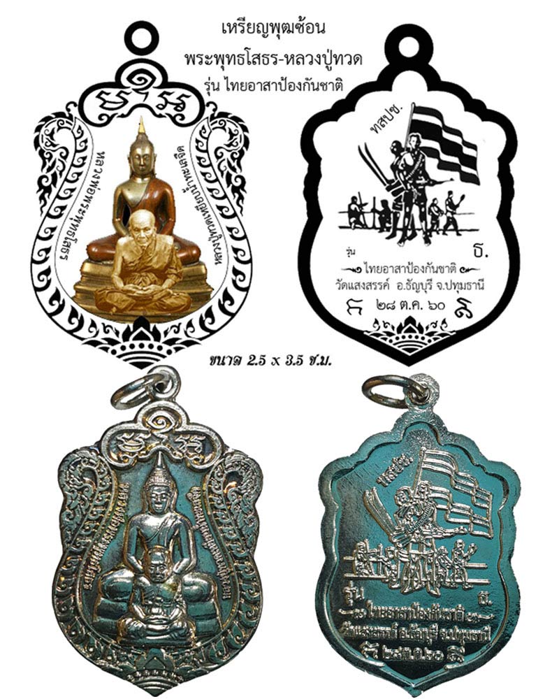 | ชื่อพระเครื่อง | เหรียญพุฒซ้อนหลวงพ่อโสธร-หลวงปู่ทวด รุ่นไทยอาสาป้องกันชาติ |