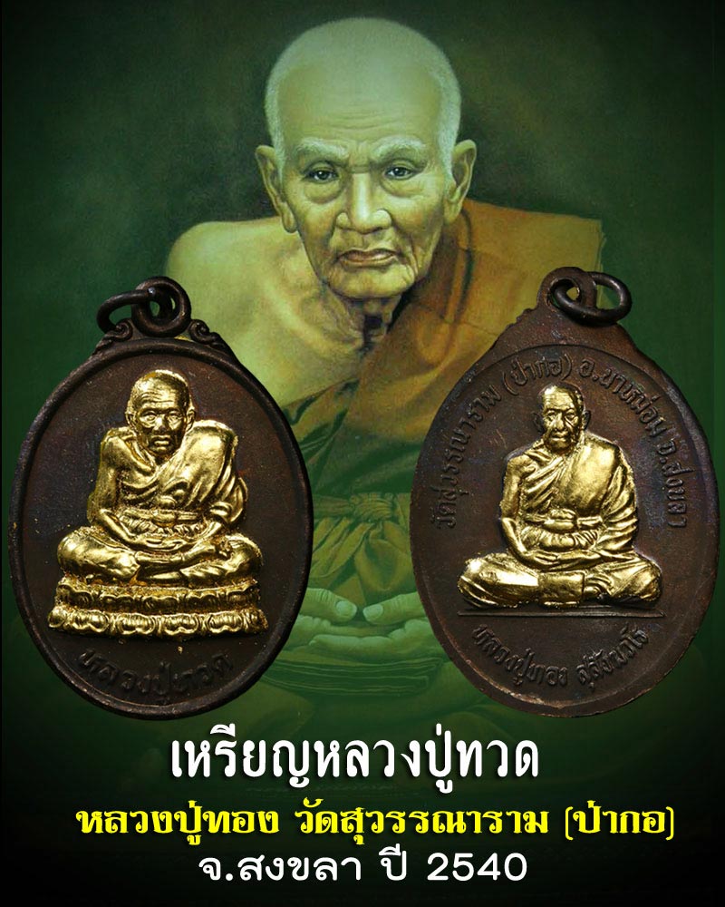 | ชื่อพระเครื่อง | เหรียญหลวงปู่ทวด หลังหลวงปู่ทอง วัดป่ากอ จ.สงขลา ปี 2540 |
