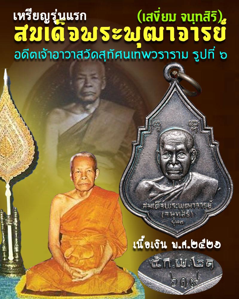 เหรียญสมเด็จพระพุฒาจารย์ (เสงี่ยม จนฺทสิริ) วัดสุทัศน์ รุ่นแรก ปี 2521 เนื้อเงิน