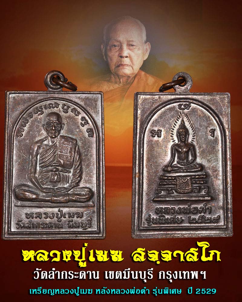 | ชื่อพระเครื่อง | เหรียญ หลวงปู่เมฆ หลังหลวงพ่อดำ รุ่นพิเศษ วัดลำกระดาน ปี 2529 |
