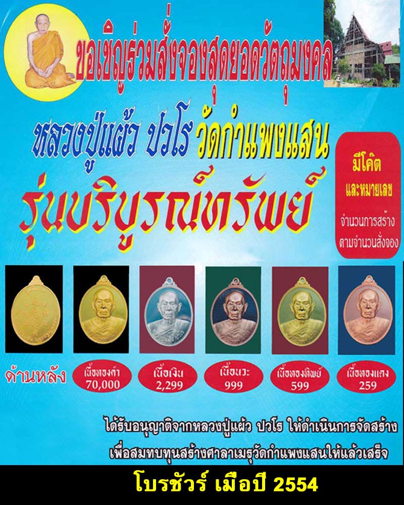 | ชื่อพระเครื่อง | เหรียญรุ่น บริบูรณ์ทรัพย์ หลวงปู่แผ้ว ปวโร วัดกำแพงแสน |