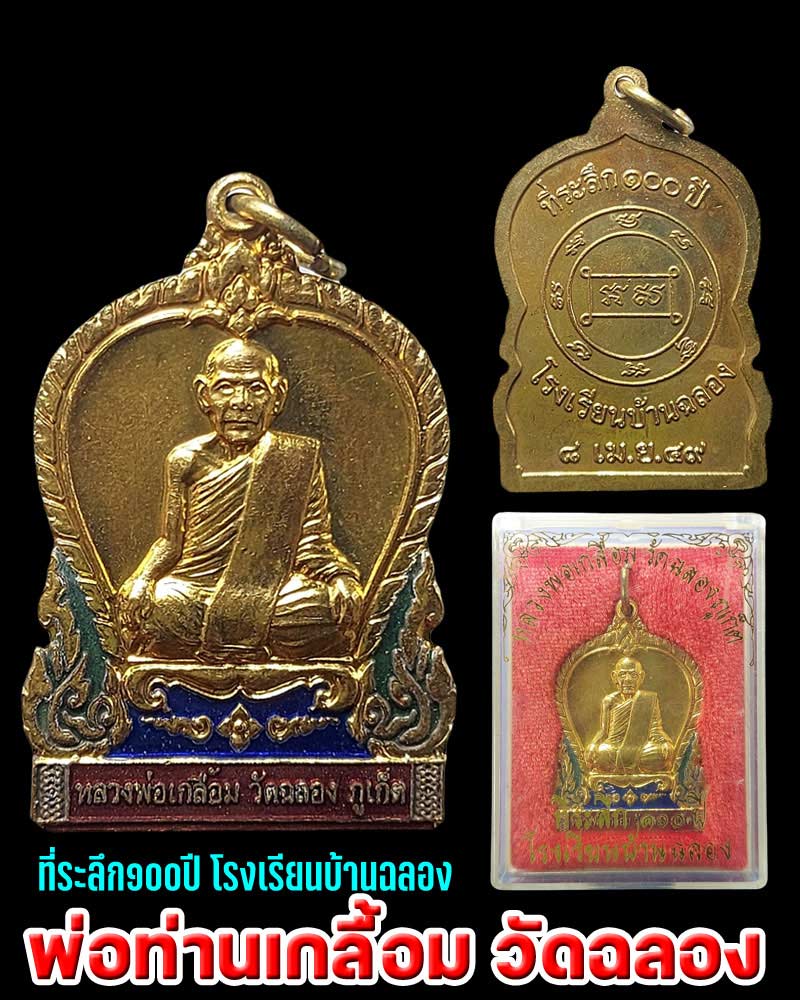 | เหรียญพ่อท่านเกลื้อม วัดฉลอง ภูเก็ต ที่ระลึก 100 ปี โรงเรียนบ้านฉลอง ปี 2549 เหรียญกะไหล่ทอง ลงยา สวยเดิม |