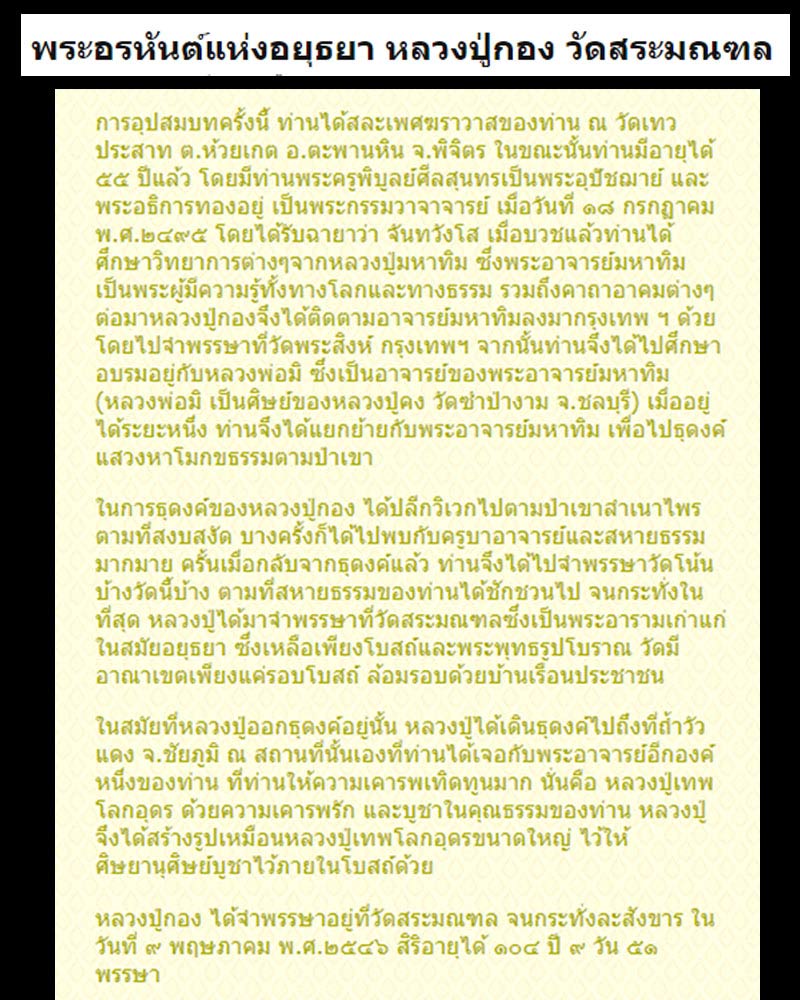 | ชื่อพระเครื่อง | หลวงปู่กอง จันทวังโส วัดสระมณฑล จ.อยุธยา |