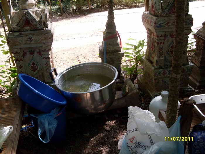 เหล่าประชาชนมารอล้างเท้าครูบาอาจารย์ก่อนขึ้นไปยังถ้ำครับ