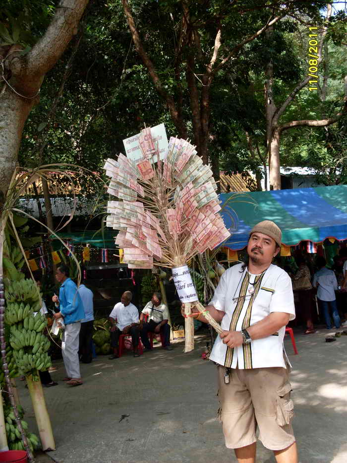 งานนี้ของที่มาทำกองกฐิน ประเภท กล้วย มะพร้าว หมาก ขนุน ฯ หลวงปู่ท่านขอให้ส่งลงไปช่วยพี่ - น้อง ที่ถูกน้ำท่วม และยังมีตั้งกองรับบริจาค " ปลาแดก " ไปแจก หมู่เฮา ที่อยู่ที่ ก.ท.ม.ด้วย อีกทั้งกฐินที่มาถวายไม่ทัน หลวงปู่ท่านรับเอาไว้แล้วให้นำไป๙ื้อของแจกผู้ประสบภัยด้วย คาราวานออกเดินทางวันนี้ครับ