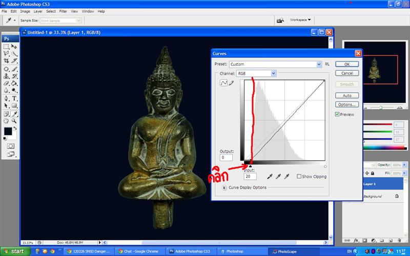 จะได้หน้าต่างออกมาดังรูปตัวอย่าง จะมีกราฟดูที่ด้านซ้ายมือของกราฟจะเห็นเป็นช่องว่าง ให้เราเลื่อนไปด้านขาวให้ตรงกับกราฟที่สูงสุด หรือไม่ถึงตรงกราฟสูงสุดก็ได้หรือจะใส่ตัวเลขในช่องก็ได้ แล้วสังเกตรูปของเราสีจะเข้มขึ้นมา ก็ดูเอาเองครับว่าใกล้เคียงกับสีจริงหรือยังอยู่ที่ความพอใจของเราครับ