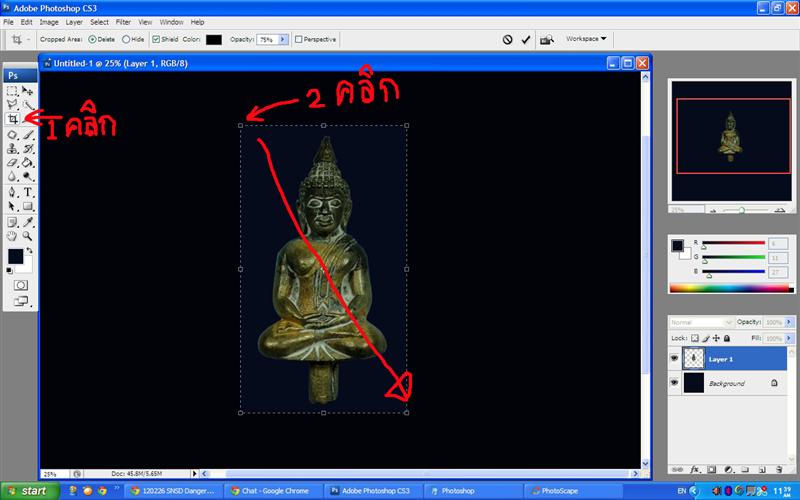 เสร็จแล้วก็ครอบรูปตามขนาดที่เราต้องการ เหมือนเดิมครับ Save เป็น PSD ก่อนครับ ไว้แก้ไขที่หลังเพิ่มเติม แล้วจึงไปที่