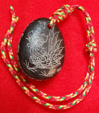 เบี้ยแก้ พอกผงพุทธคุณ(ผสมผงพุทธคุณเก่า หลวงปู่หมุนเสก) ลายไก่ฟ้า พระอาจารย์ซ้ง วัดอินทราวาส