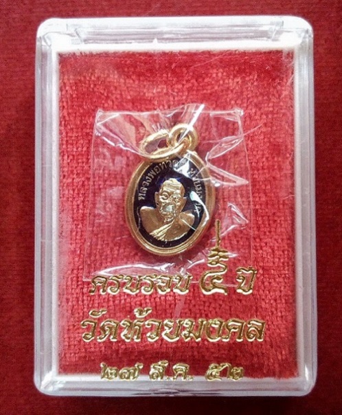 เหรียญเม็ดแตง หลวงปู่ทวด วัดห้วยมงคล ปี2552 กะไหล่ทองลงยาสีน้ำเงิน...เคาะเดียวแดง...