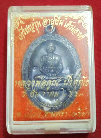 วัดใจไปเลย...เหรียญอายุยืนเต็มองค์ เนื้อทองแดงรมดำ หมายเลข ๗๐ สภาพงามๆ พร้อมกล่องครับ...
