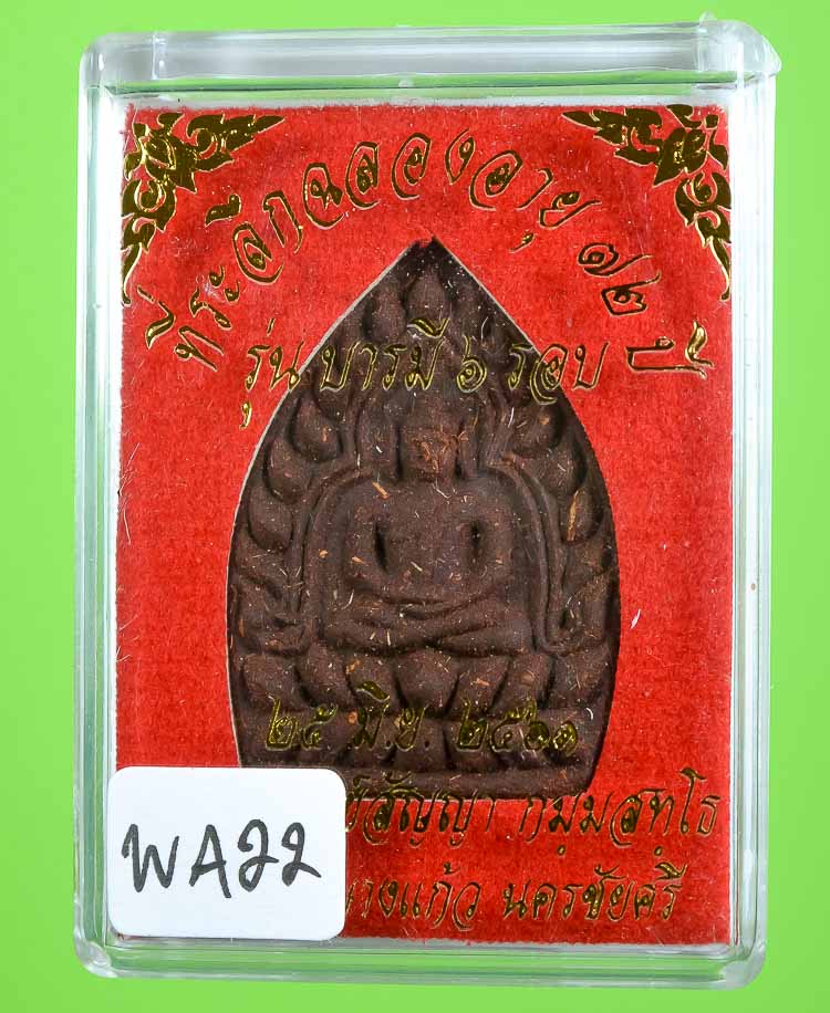 | รายละเอียด | เป็นเนื้อผงยาวาสนาจินดามณี สูตรของวัดกลางบางแก้ว แท้ๆ สามารถกินได้นะครับ ออกในวาระ ฉลองอายุครบ 6 รอบ 72 ปี ของท่านปลุกเศก เสร็จ หลวงพ่อทำลายบล็อกด้วยตนเอง |