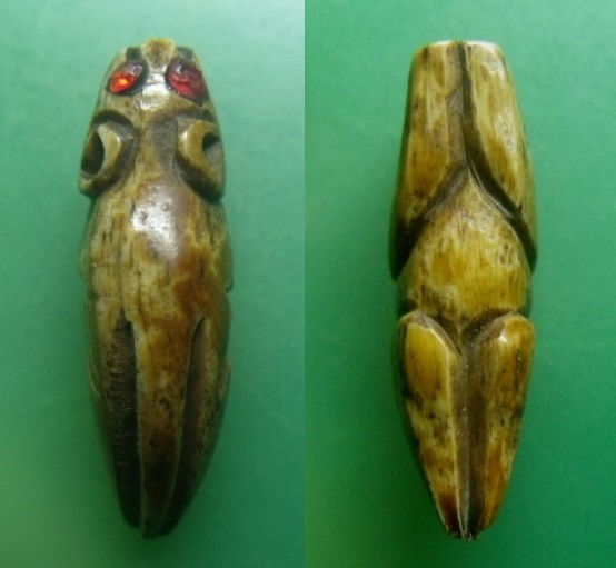 **วัดใจ**เสือเผ่นมหาอำนาจ ฝังพลอยตาแดง แกะจากกระดูกหรือเขี้ยว มีจารยันต์ เนื้อจัดๆ ไม่ทราบที่**สวยๆ