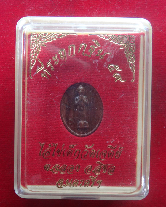 | รายละเอียด | ไอ้ไข่เด็กวัดเจดีย์ เหรียญปั๊ม เนื้อไม้สัก ทีระฤกกฐิน ปี 2559 นครศรีธรรมราช ตำนานกุมารเทพ “ไอ้ไข่ เด็กวัดเจดีย์” อภินิหารความศักดิ์สิทธิ์ ความเชื่อและความศรัทธาในแต่ละพื้นที่ แต่ละภูมิภาคในประเทศไทยนั้นมีมากมายหลายแบบแตกต่างกันไป ซึ่งความเชื่อและความศรัทธาล้วนแล้ว แต่มีประวัติความเป็นมาแทบทั้งสิ้น ดังเช่น วัดเจดีย์ไอ้ไข่ อำเภอ สิชล จังหวัด นครศรีธรรมราช จากเรื่องราวเสียงที่ร่ำลือถึงความศักดิ์สิทธ์ ขออะไรก็ได้สมหวังทุกอย่าง รูปไม้แกะสลักของเด็กชายอายุประมาณ 9 -10 ขวบ ตั้งอยู่ในศาลาในวัดเจดีย์ ที่เชื่่อกันว่าเป็นวิญญาณศักดิ์สิทธิ์ที่สถิตย์อยู่ ณ วัดแห่งนี้เป็นที่เคารพสักการะของชาวบ้านตั้งแต่ในละแวกใกล้วัดไปจนถึงต่างจังหวัดในแถบภาคใต้จากศรัทธาที่เชื่อกันว่า “ขอได้ไหว้รับ” โดยเฉพาะโชคลาภ และการค้าขาย วัดเจดีย์ก็ไม่แตกต่างกับวัดทั่วๆไปในประเทศไทยแต่สิ่งที่แปลก และเป็นที่เคารพศรัทธา นับถือ ของชาวบ้านในละแวกนั้นและผู้คนทั่วสาระทิศคือ คือ ไอ้ไข่ มีการเล่าสืบต่อกันมาหลายชั่วอายุคนว่า สถานที่ตั้งวัดเจดีย์ปัจจุบันนั้นเมื่อก่อนได้มี หลวงปู่ทวดซึ่งเป็นเกจิอาจารย์ดังสายปักษ์ใต้ได้มาปักกลด เดินธุดงค์อยู่บริเวณนั้น ส่วนไอ้ไข่นั้นเชื่อว่าเป็นวิญญาณเด็กอายุประมาณ 9 – 10 ขวบเป็นลูกศิษย์ซึ่งติดตามหลวงปู่ทวด เมื่อหลวงปู่ทวดมาถึงสถานที่ดังกล่าวกลับพบว่ามีทรัพย์สมบัติ และ ศาสนสถานที่สำคัญเป็นจำนวนมากซึ่งได้ให้ ไอ้ไข่ สิงสถิตเฝ้าทรัพย์สมบัติดังกล่าว วิญญาณดวงนี้เฝ้าดูแลปกปักษ์รักษาทรัพย์สินของแผ่นดิน อยู่ที่วัดแห่งนี้ตั้งแต่นั้นมา และหมู่บ้านนั้นภายหลังเปลี่ยนชื่อเป็น “หมู่บ้านโพธิ์เสด็จ” จวบเท่าปัจจุบัน วัดเจดีย์เมื่อก่อนเป็นวัดที่รกร้างมาประมาณ 1,000 ปี แล้ว ได้บูรณะใหม่เมื่อปี พ.ศ. 2500 ซึ่งที่ ที่กำลังก่อสร้างอุโบสถอยู่นั้นเมื่อก่อนเป็นเจดีย์รกร้างชาวบ้านไม่กล้าเข้าไป หลังจากปี พ.ศ. 2500 ผู้ใดที่เข้ามานอนพักข้างแรมภายในบริเวณวัดเจดีย์ถ้าไม่เอ่ยชื่อ หรือบอกล่าว หรือขอขมาต่อไอ้ไข่แล้ว จะนอนไม่ได้ มีการก่อกวนทั้งคืนเช่น เมื่อทำท่าจะหลับจะมีเด็กเอามือมาตีศีรษะบ้าง ดึงขา ดึงแขนบ้าง ก่อกวน ตามประสาแบบเด็กๆ ทั้งคืน ประวัติของ ไอ้ไข่ วัดเจดีย์ หรือ ตาไข่วัดเจดีย์ ทำไมถึงเรียกชื่อแตกต่างกัน? ได้รับคำตอบว่าเมื่อพิจารณาอายุของไอ้ไข่แล้วอายุหลายปีแล้ว ชาวบ้านเชื่อว่าคงไม่เหมาะสมที่ลูกหลาน เด็กรุ่นใหม่จะเรียก “ไอ้ไข่” สมควรเรียก “ตาไข่” ซึ่งน่าจะเหมาะสมกว่า คำว่าไอ้ไข
