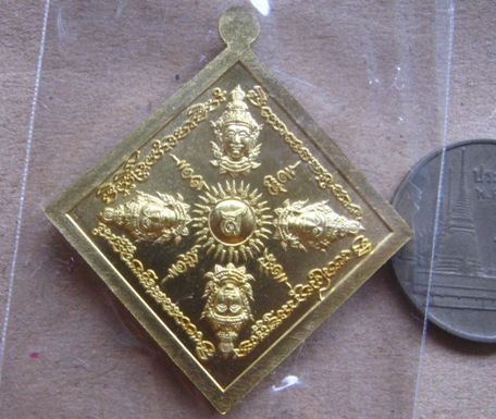 เหรียญข้าวหลามตัด หลังพรมสี่หน้า หลวงปู่แสน วัดบ้านหนองจิก ศรีสะเกษ ปี2560 เนื้อทองทิพย์ เลข232+กล่อ
