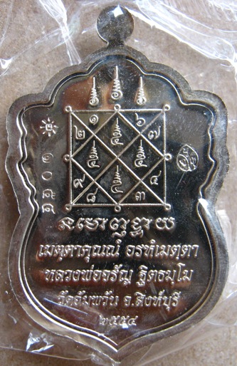 เหรียญใบเสมาเศรษฐีใหญ่ เนื้ออัลปาก้า ของ หลวงพ่อจรัญ วัดอัมพวัน จ.สิงห์บุรี หมายเลข 1054
