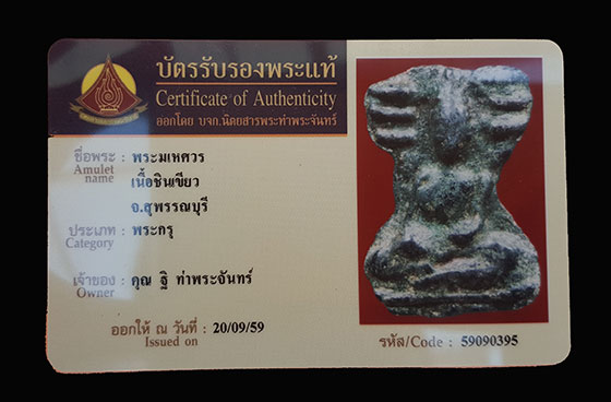 พระมเหศวร กรุวัดพระศรีรัตนมหาธาตุ จ.สุพรรณบุรี พร้อมบัตร++
