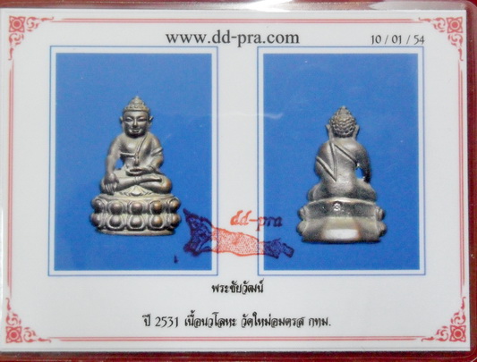 | ชื่อพระเครื่อง | พระชัยวัฒน์ บางขุนพรหม ปี31 เนื้อนวโลหะพร้อมบัตรดีดี เริ่มหายากแล้วอนาคตขึ้นไปเลื่อยๆลองดูครับ(5309) |
