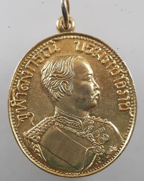 “ เหรียญจุฬาลงกรณ์ บรมราชาธิราช พระปิยะมหาราช(ร.๕) หลวงพ่อเปิ่น วัดบางพระ จ.นครปฐม กะไหล่ทองสวยงามคร
