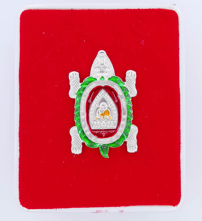 *พญาเต่ามหาลาภ เจ้าสัวมหาเศรษฐี วัดห้วยผักชี เนื้อเงินลงยาน้ำเขียว เคาะเดียวแดง*