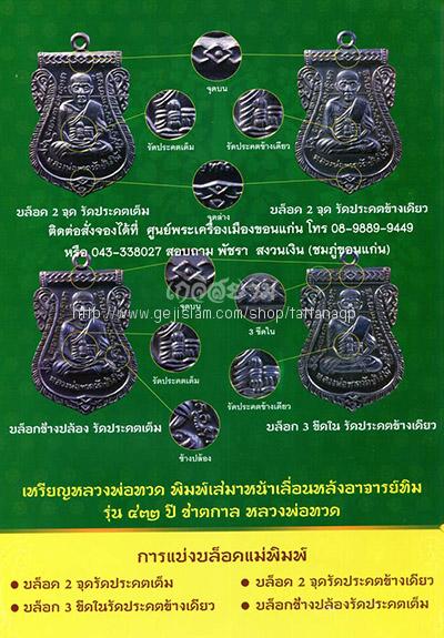 | รายละเอียด | เหรียญเสมาหลวงพ่อทวด รุ่น 432 ปีชาตกาล ปี 2557 เนื้ออัลปก้า บล๊อค3ขีดใน รัดประคดข้างเต็ม พร้อมกล่องวัดเดิมๆครับ พิธีพุทธาภิเษก เป็นการชุมนุมพระเกจิคณาจารย์สายหลวงพ่อทวด สายใต้และสายเขาอ้อทั้งหมด ที่พิเศษสุดคือมีพิธีบวงสรวงถึง3วาระ 3สถานที่ คือ1.พิธีบวงสรวง ณสถูปหลวงพ่อทวดเหยียบน้ำทะเลจืด วัดช้างให้ จ.ปัตตานี เมื่อวันเสาร์ที่7 ธันวาคม 2556(สถานที่เกิดเป็นพระอรหันต์) 2.พิธีบวงสรวง ณ สำนักสงฆ์ต้นเลียบ จ.สงขลา เมื่อวันอังคารที่7 มกราคม 2557(สถานที่เกิดและฝังรก) 3.พิธีบวงสรวง ณ ศาลาหลวงพ่อทวดท่าแพ จ.นครศรีธรรมราช(สถานที่เกิดสมณเพศ) ส่วนพิธีพุทธาภิเษก ณ ศาลหลักเมือง จ.ปัตตานี เมื่อวันเสาร์ที่ 15 มีนาคม 2557 พิธีปลุกเสกโดยหลวงพ่อเขียววัดห้วยเงาะ หลวงพ่อหวานวัดสะบ้าย้อย หลวงพ่อจ่างวัดศรีมหาโพธิ์ฯลฯ เกิดมหัศจรรย์เหนือมณฑลพิธีบวงสรวง ณ สถูปหลวงพ่อทวด วัดช้างให้ พระอาทิตย์ทรงกลดตลอดพิธี การจัดสร้างหลวงพ่อทวดรุ่น432ปี เพื่อนำรายได้ จัดซื้อจัดหาอุปกรณ์พิเศษป้องกันเหตุร้ายในจังหวัดชายแดนภาคใต้ กับมอบให้กองทุนหลวงพ่อทวด จตุคาม 2550 |
