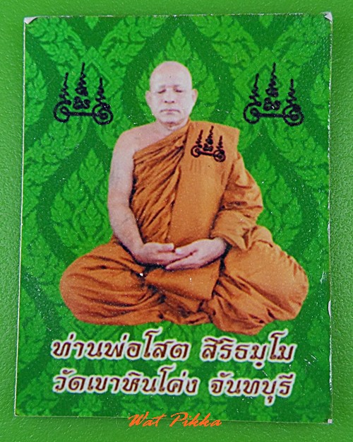 | รายละเอียด | หลวงพ่อโสต สิริธมฺโม วัดสันติธรรมคีรี(เขาหินโค่ง) บ้านชำตาเรือง ต.คลองพลู อ.เขาคิชฌกูฏ จ.จันทบุรี หลังยันต์ พร้อม รูปกระดาษหลังปั๊มยันต์ ปี 2558 |