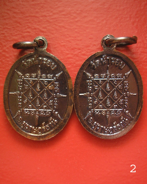 เหรียญเม็ดแตง หลวงพ่อกระจ่าง วัดน้ำรอบ จ.สุราษฎร์ธานี 2 เหรียญ
