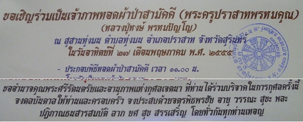 ขอเชิญร่วมทำบุญทอดผ้าป่าสามัคคี หลวงปู่หงษ์ พรหมปัญโญ ณ สุสานทุ่งมน ต.ทุ่งมน อ.ปราสาท จ.สุรินทร์ - webpra