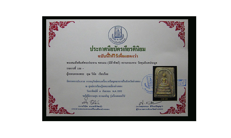 โอโฮ ฟอร์มขั้นเทพ...สมเด็จขุนอิน พิมพ์ประธาน(คราบกระเทาะ) เส้นซุ้มองค์พระคมชัดลึก+ใบเซอร์เกียรตินิยม - webpra