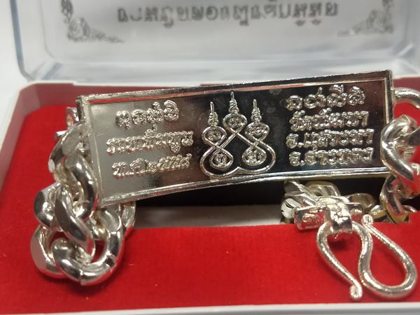เลสข้อมือหลวงพ่อรวย ขนาด 4 บาท อาปาก้าลงยา ยาว 7.5 นิ้ว ลงยาสีแดงน้ำเงิน รุ่นรวยเพิ่มพูน ปี2558