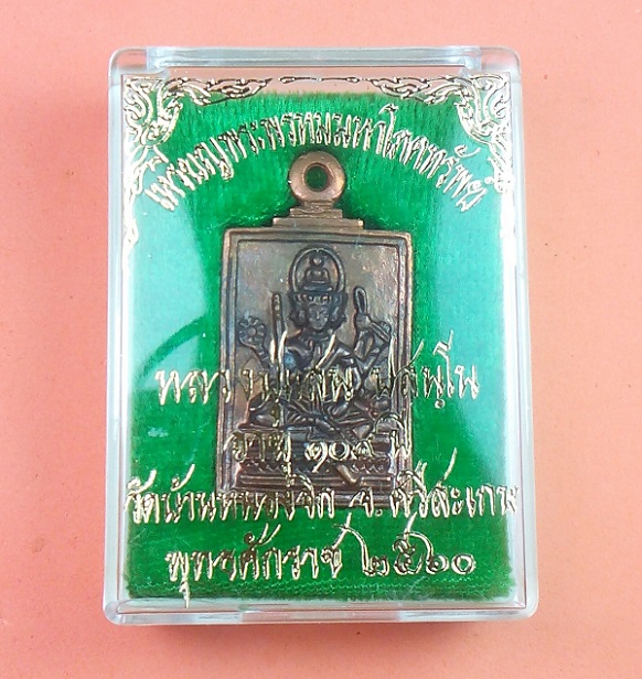 | ชื่อพระเครื่อง | เหรียญหล่อพระพรหมมหาโภคทรัพย์ หลวงปู่แสน อายุ 109 ปี ปี 2560 เนื้อทองทิพย์ กล่องเดิม |