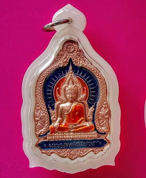 พระพุทธชินราช รุ่นจักรพรรดิ์ หลังท้าวเวสสุวรรณ หลวงพ่อพัฒน์ เนื้อทองแดงลงยา 2โค๊ต,#225.เคาะเดียวแดง.