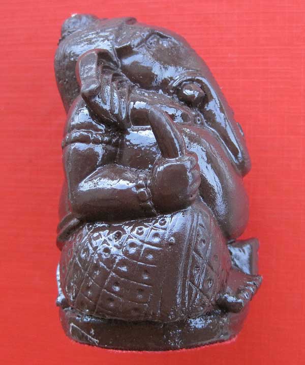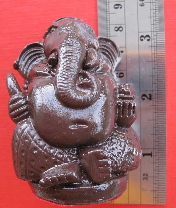 พระพิฒเนศรขนากตั้งหน้ารถ เนื้อผงแร่เหล็กน้ำพี้ หน้าตัก 2 นิ้ว สูง 3 นิ้ว หลวงปู่คำบุ เสาร์ ๕ วันที่ ๕ เดือน ๕ ปี ๕๕ มีส่วนผสมของแร่เหล็กน้ำพี้เยอะมากสามารถทดสอบด้วยการนำแม่เหล็กติดดูได้ครับ ใต้ฐานเขียนด้วยหมึกสีดำว่า