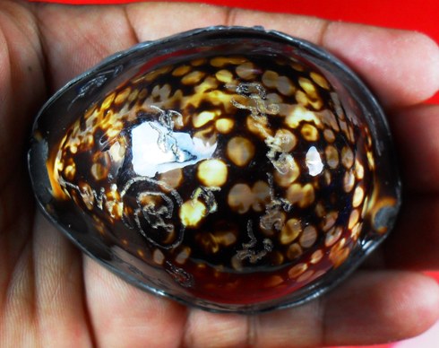 เบี้ยแก้ ตัวใหญ่ องค์ครู เท่าฝ่ามือ จารมือทั้งตัว สร้างน้อยครับทมีปรอทอยู่ด้านใน เขย่าดังแน่น ( หายา