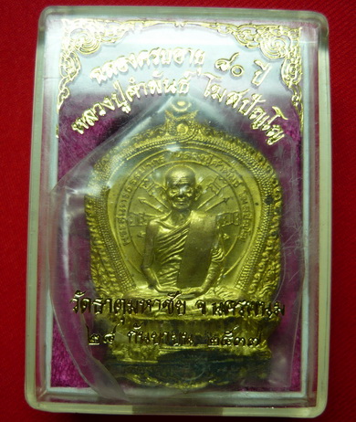 เหรียญหลวงปู่คำพันธ์ ฉลองครบอายุ 80 ปีหรือ รุ่นอภิมหาทรัพย์ สร้างปี 37 วัดธาตุมหาชัย เนื้อทองฝาบาตร