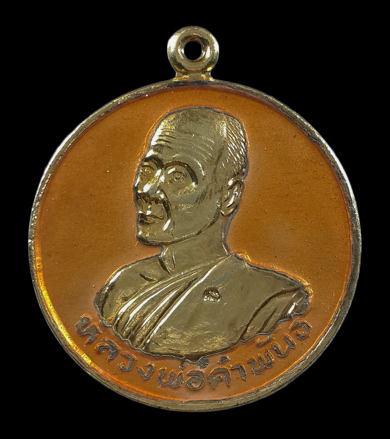เหรียญหลวงปู่คำพันธ์ วัดธาตุมหาชัย จ.นครพนม เนื้อกะหลั่ยทองลงยาส้ม