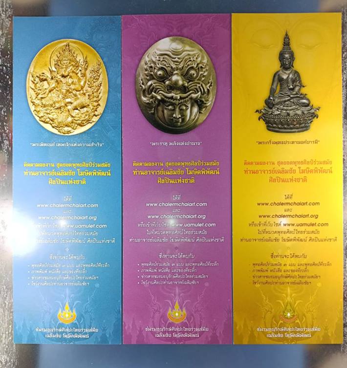 | รายละเอียด | ภาพพิมพ์ (โปสการ์ด ) พระพุทธประทานยศบารมี, พระพิฆเนศ, พระราหู ขนาดกว้าง 3 นิ้ว ยาว 9 นิ้ว รวม 3 แผ่น -จัดพิมพ์และแจกในงาน ธกส.กรุงเทพฯ เมื่อปี 2556 โดยชมรมอนุรักษ์ศิลปะไทยร่วมสมัย ท่านอาจารย์เฉลิมชัย โฆษิตพิพัฒน์ (สภาพใหม่ ทั้ง3ใบ) |