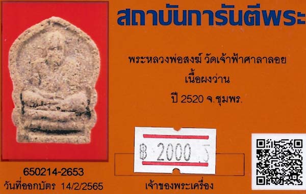 | ชื่อพระเครื่อง | ขายขาดทุน!!!พระหลวงพ่อสงฆ์ ปี ๒๐ วัดเจ้าฟ้าศาลาลอย เนื้อผงว่าน+บัตรรับรองพระแท้*135 |