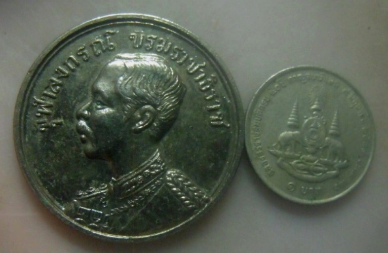 **เบาๆ**เหรียญเทิดพระเกียรติ ร.๕ ครบรอบ ๘๐ ปี หลวงพ่อเกษม เขมโก จ.ลำปาง ปี ๒๕๓๕**กะไหล่เงิน สวยๆ