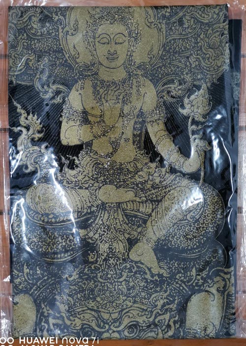 อภิปัญญามหาเศรษฐี พุทธศิลป์ในรูปแบบของ อ.เฉลิมชัย โฆษิตพิพัฒน์ ผ้ายันต์สีดำ ผืนใหญ่ ขนาด 35*25 นิ้ว