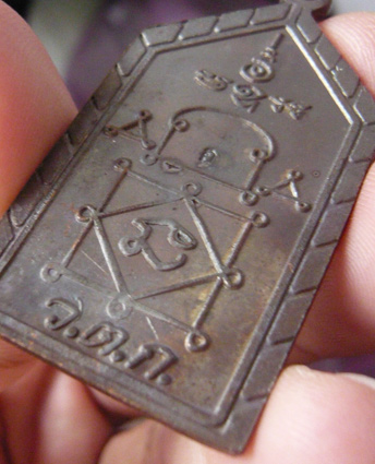 หลวงพ่ออุ้น วัดตาลกง เหรียญปิดตาจัมโบ้ 5 เหลี่ยม เนื้อทองแดง พ.ศ. 2548
