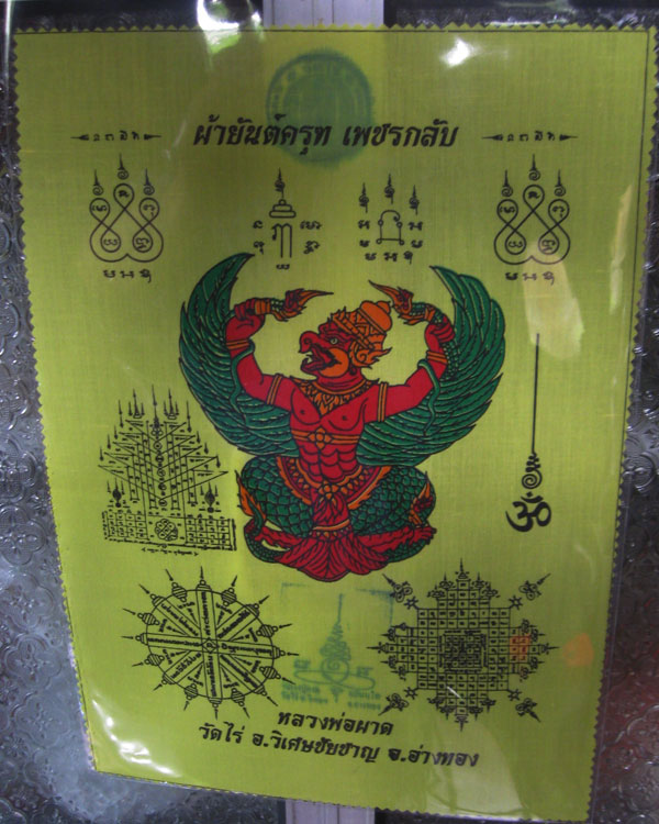 ผ้ายันต์ พญาครุฑ เพชรกลับ กลับดวง พลิกชะตา หลวงปู่ผาด วัดไร่ อ่างทอง