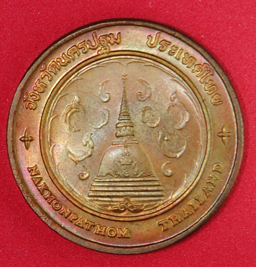 เหรียญที่ระลึกประจำจังหวัดนครปฐม ขนาด 2.5ซ.ม. ด้านหลังเป็นรูปพุทธมณทล