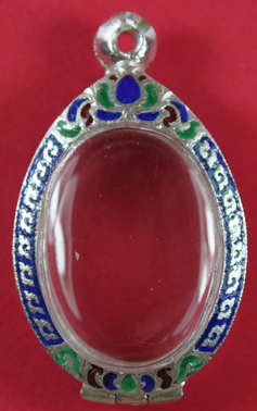 | ชื่อพระเครื่อง | ตลับเงินลงยารูปไข่กลางฝังเพชรรัสเชียเต็มใบ เปิดหลังของใหม่ |