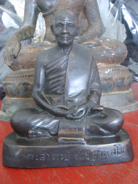 พระบูชา"พระอาจารย์ ชอบ ฐานสโม"หน้าตัก 5 นิ้ว เนื้อโลหะ ทองเหลือง รมดำ ปี 2511
